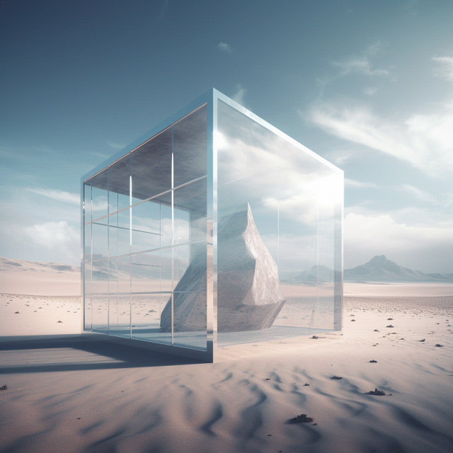Il cubo è il museo. La roccia è il pensiero non conforme. Il deserto è il pubblico: vasto, indifferente, assente.
